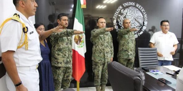 El acto se realizó en la sala de Cabildo, donde el mandatario municipal protestó y entregó los nombramientos a quien será el Comisario de la Policía Municipal Capitán de Fragata de Infantería de Marina Juan Carlos Arias Montes de Oca; al Comandante Operativo de la policía Teniente de Navío de Infantería Paracaidista Juan José González Orozco; así como al Jefe Administrativo de la Policía Primer Maestre de Infantería de Marina Juan Gabriel Muñoz Martínez y a la licenciada Domitila Carrasco Vázquez como Juez Cívico Calificador del municipio.