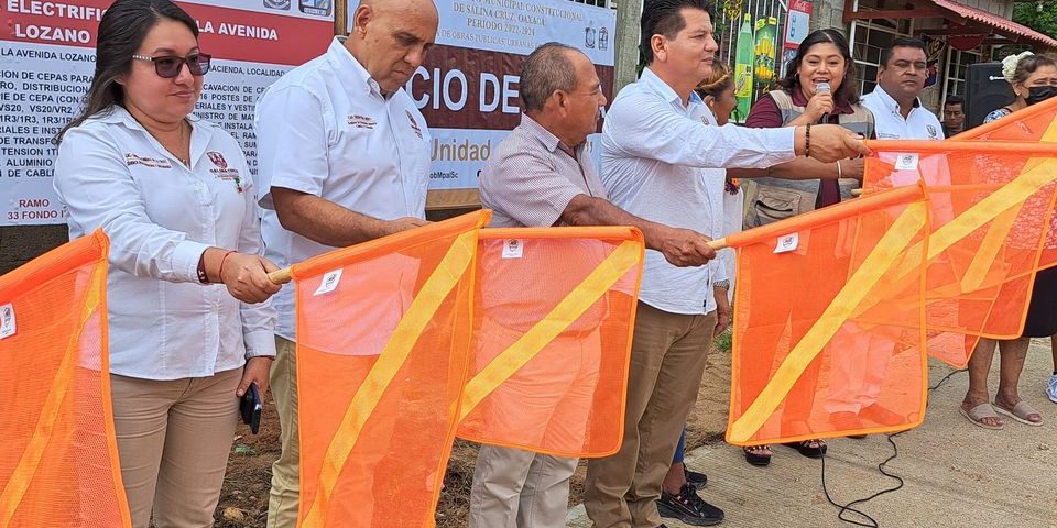 SALINA CRUZ, OAX. Ante la presencia de vecinos de la Colonia La Hacienda, el Presidente Municipal Constitucional Arq. Daniel Méndez Sosa, dio el banderazo de inicio de la ampliación de la electrificación en la Avenida «Lozano Cobos».