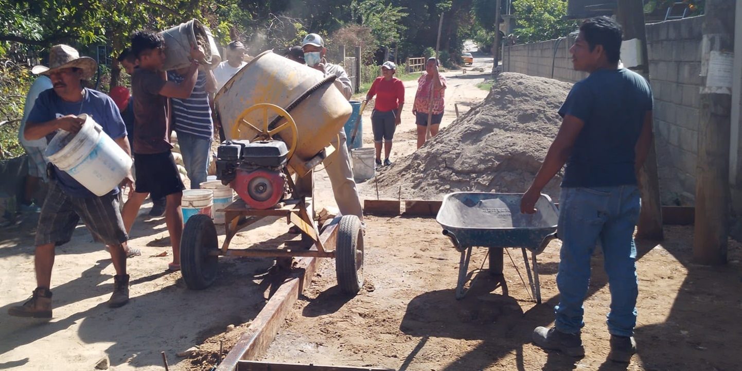 Desde las primeras horas de este domingo, los vecinos de la colonia Soledad recibieron cemento por parte del H. Ayuntamiento Municipal Constitucional, quienes comenzaron con sus actividades cotidianas, similar como lo hacen en barrios, colonias y agencias municipales del puerto.