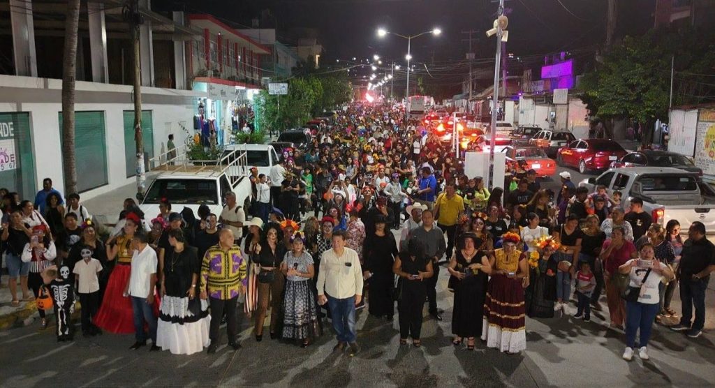 Salina Cruz, Oax.- En el marco de la celebración del Día de Muertos, el gobierno municipal que encabeza el presidente Daniel Méndez Sosa llevó a cabo una vibrante comparsa y un colorido concurso de catrines y catrinas, reafirmando el compromiso de conservar y promover las tradiciones que dan identidad a la comunidad.