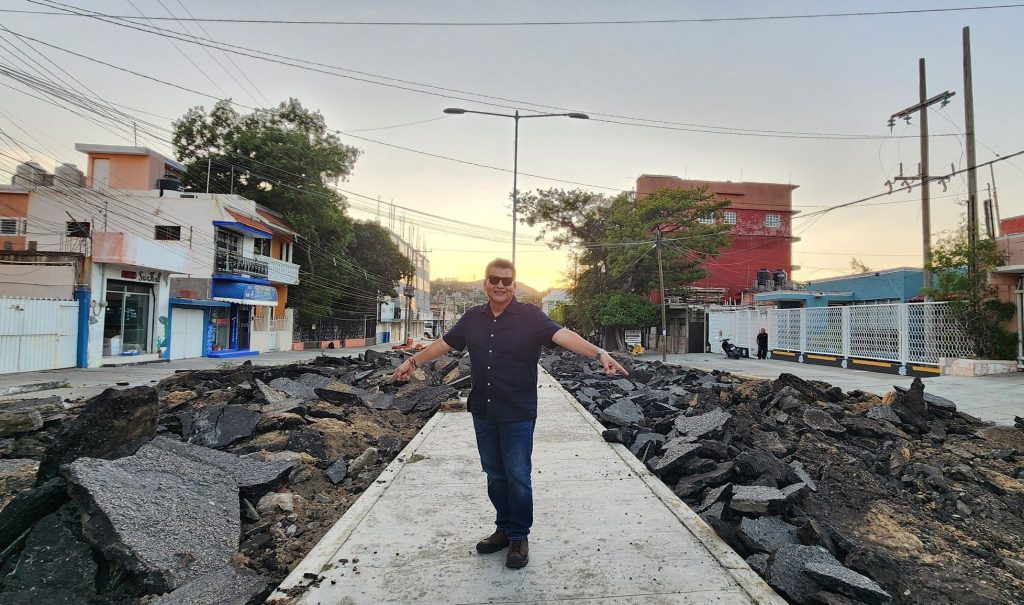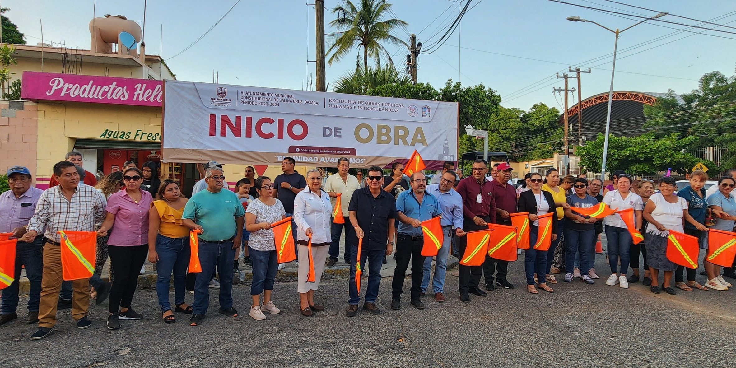 Salina Cruz, Oax.- Como parte del compromiso de transformar el municipio y cumplir con las promesas hechas a la ciudadanía, el presidente municipal Daniel Méndez Sosa dio el banderazo de inicio a la pavimentación con concreto hidráulico de la calle Manzanillo, ubicada en el corazón de la ciudad.