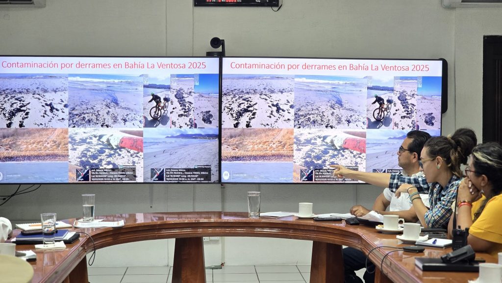El encuentro se llevó a cabo en las instalaciones de la Administración del Puerto, con la participación de representantes de la Secretaría de Marina, Petróleos Mexicanos (PEMEX), la Terminal Marítima y la ASIPONA. Durante la reunión, la directora de Ecología, Dra. Diana González, presentó un informe detallado en el que expuso evidencia de los derrames y la contaminación detectada en zonas como La Ventosa, Playa Abierta, Playa Azul, Punta Conejo y Playa Brasil, en distintas fechas.