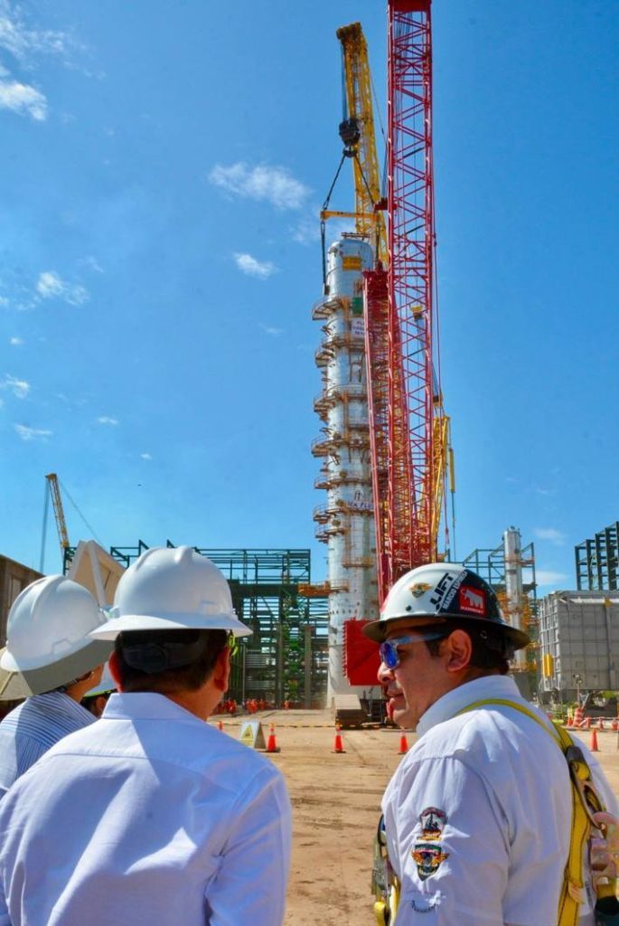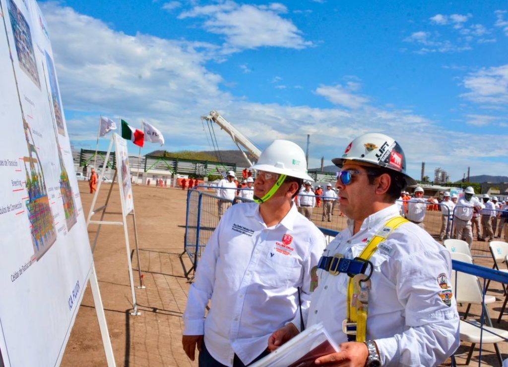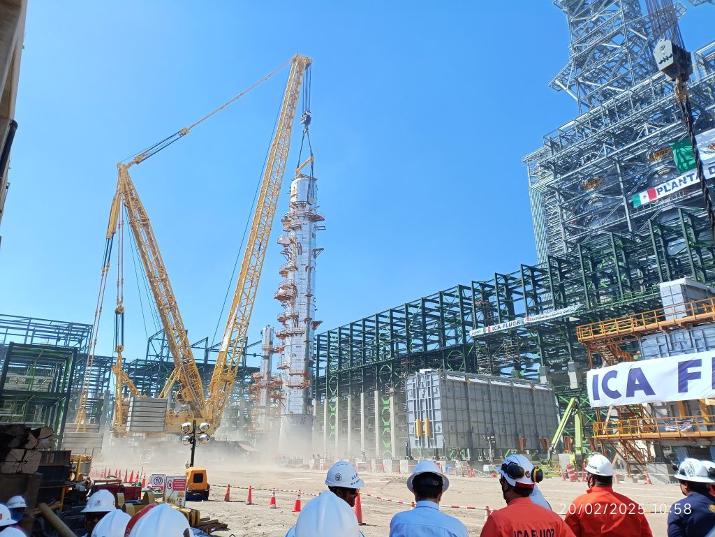 El presidente municipal de Salina Cruz, Daniel Méndez Sosa, junto a personal de Petróleos Mexicanos (PEMEX) y de la empresa ICA FLUOR, presenció el izaje de la Torre Fraccionadora de la Planta de Coque, una pieza clave dentro del proceso de modernización de la Refinería de Salina Cruz.