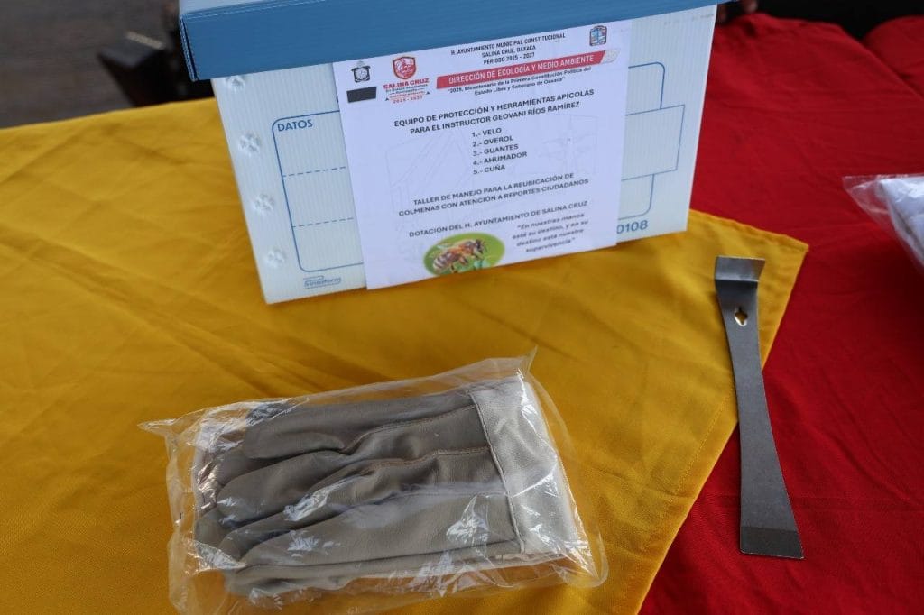 Durante el evento se entregaron kits de protección y herramientas apícolas al personal de Protección Civil, a la Dirección de Parques y Jardines, así como un kit compartido entre la Dirección de Ecología y Medio Ambiente y la Dirección de Servicios Municipales. Los equipos incluyen velo, overol, guantes, ahumador y cuña. Asimismo, se realizó la donación de un kit al instructor Giovani Ríos Ramírez, en agradecimiento por su valioso apoyo.