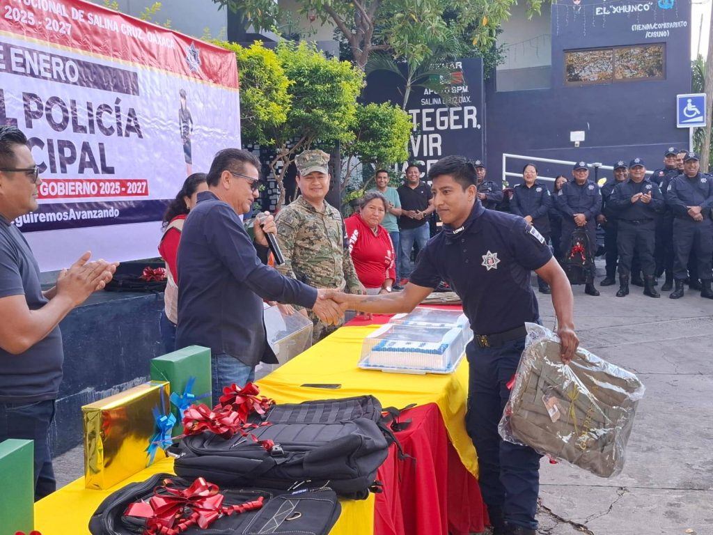 En su mensaje, el edil informó que se implementará una reestructuración salarial y que se continuará invirtiendo en capacitación, patrullas y equipamiento, con el objetivo de fortalecer a la corporación policial. Asimismo, destacó que en este 2026, Salina Cruz seguirá avanzando en su proceso de transformación, para que la ciudadanía se sienta cada vez más orgullosa de su cuerpo policial.