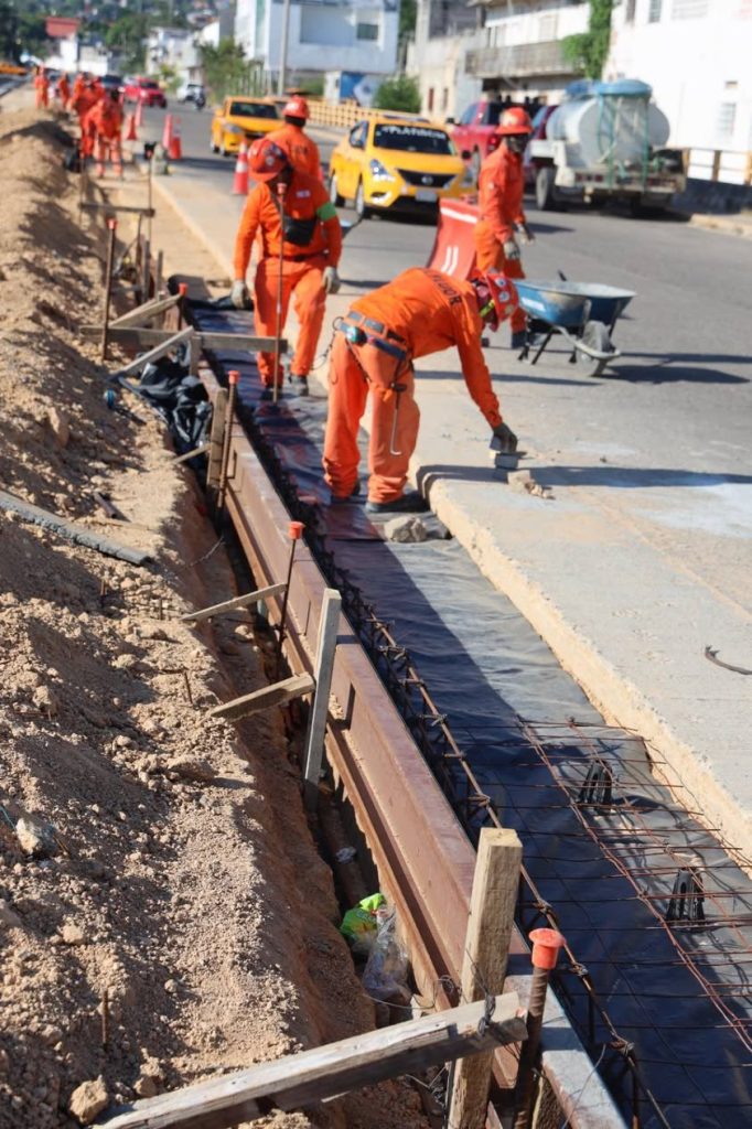 En atención a esta indicación, la empresa ICA lleva a cabo actualmente labores de reconstrucción de guarniciones, colocación de malla, así como la reparación de banquetas y pavimentos que resultaron dañados por el paso de los equipos especializados.