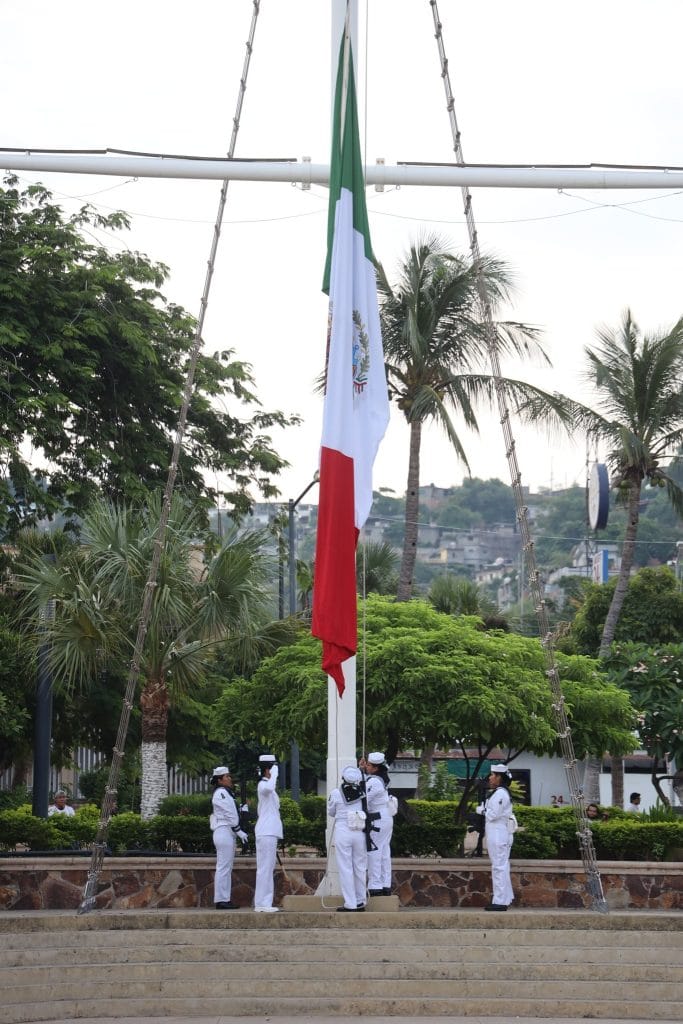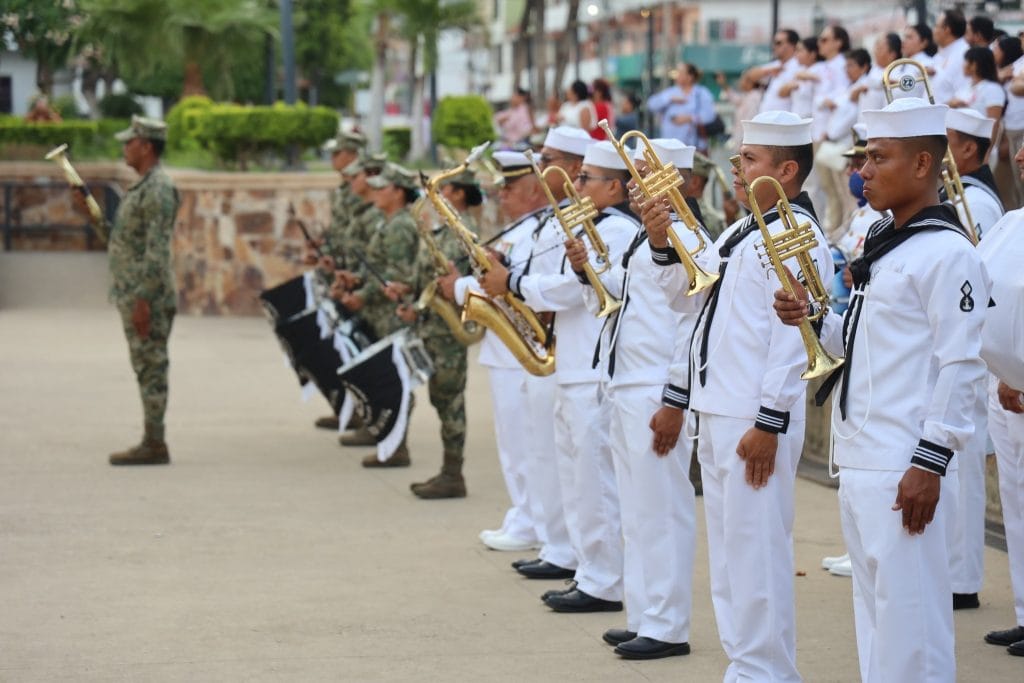 El acto dio inicio con los honores al Lábaro Patrio, acompañados por la Banda de Música de la Décima Región Naval, así como el izamiento de la Bandera Nacional a toda asta, en memoria de las mujeres y los hombres que en 1810 iniciaron la gesta histórica que otorgó libertad y soberanía a la nación.