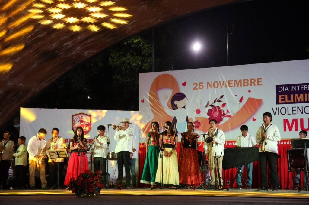 La marcha concluyó en el Parque Central, donde se llevó a cabo el concierto “Ecos que Resuenan”, una presentación artística de reflexión y sensibilización que integró el talento local del Grupo Vanish y Carolina Rechiga, quienes a través de su música reforzaron el mensaje de unidad, conciencia y cultura de paz.
