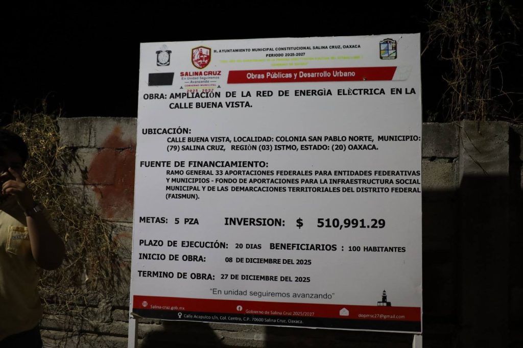 Salina Cruz se sigue transformando con más obras de electrificación.